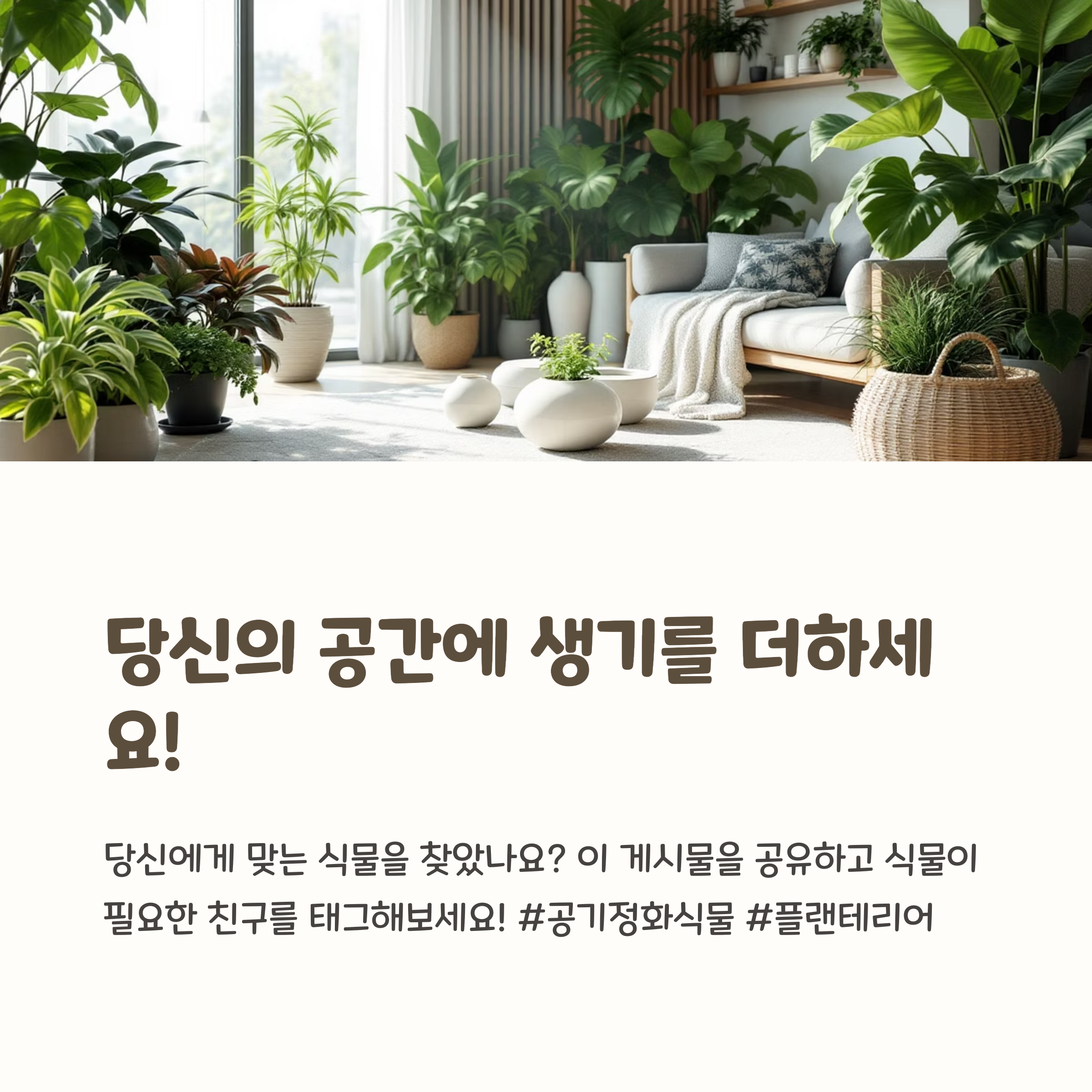 이러한 실내 공기정화 식물들은 단순히 유해물질을 제거하는 것뿐만 아니라, 습도 조절, 산소 공급, 그리고 심리적 안정감을 제공하는 등 다양한 이점을 가지고 있습니다. 자신의 생활 환경과 관리 가능한 수준을 고려해 적합한 식물을 선택하고, 건강한 실내 환경을 만들어보세요! 🏡💚