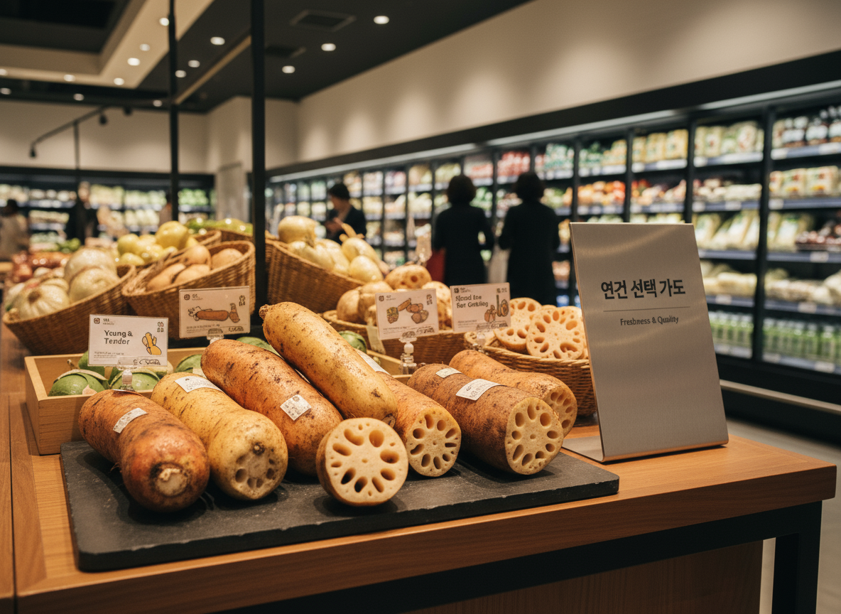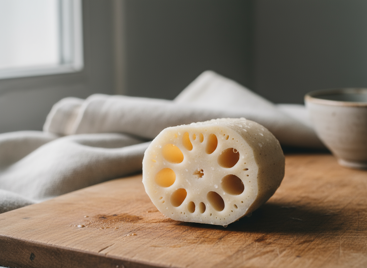 연근은 '진흙 속 보물'이라고 불릴 만큼 영양이 풍부한 식재료입니다. 100g당 약 57mg의 비타민C가 함유되어 있어 레몬 한 개와 맞먹는 양이죠. 면역력 강화와 피로 회복에 효과적이며, 특히 연근의 끈적한 점액 성분인 뮤신은 위 점막을 보호하고 소화를 돕는 천연 소화제 역할을 합니다.
