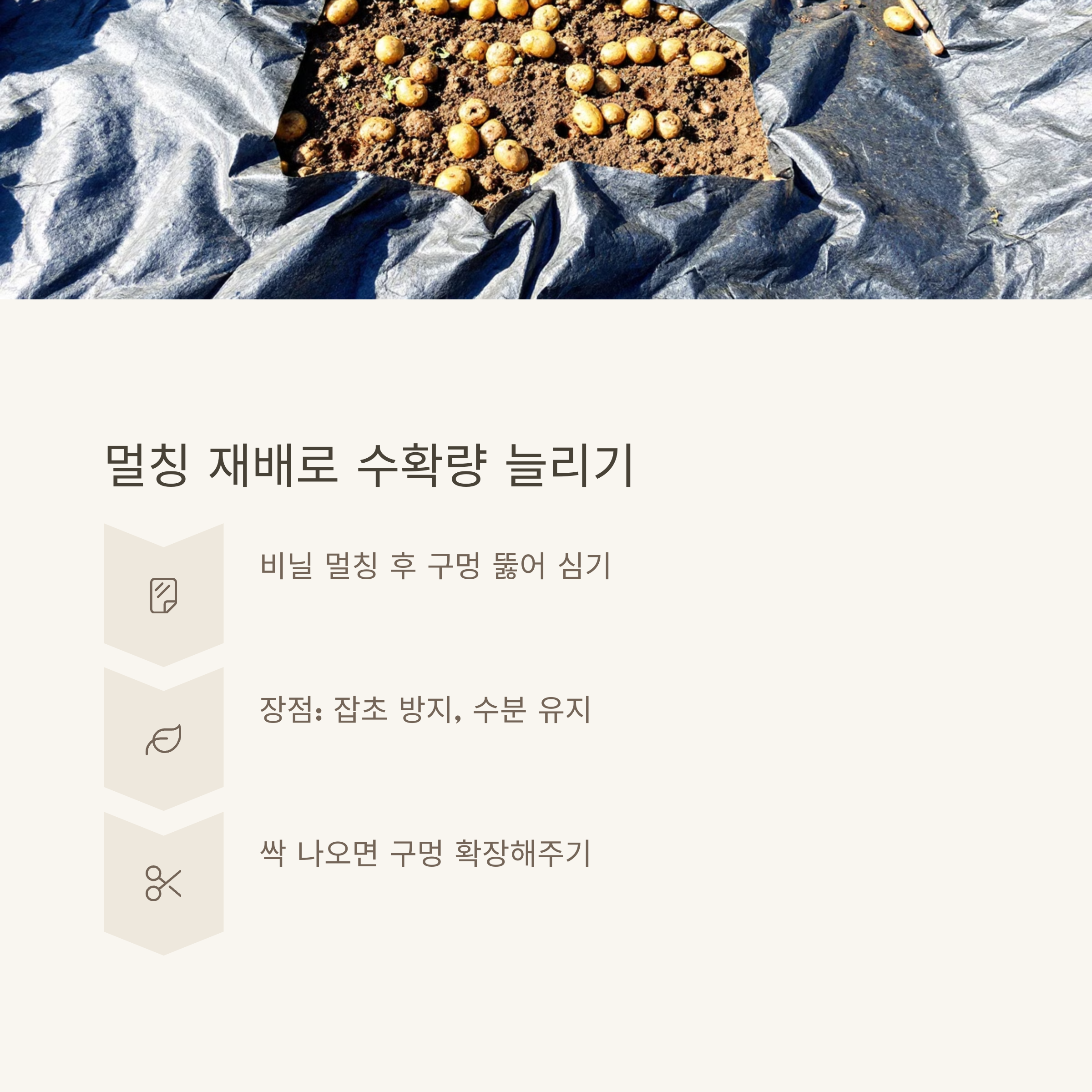 꿀팁: 수확 후 작은 감자는 씨감자로 따로 보관해보세요. 다음 해에 써도 좋아요!