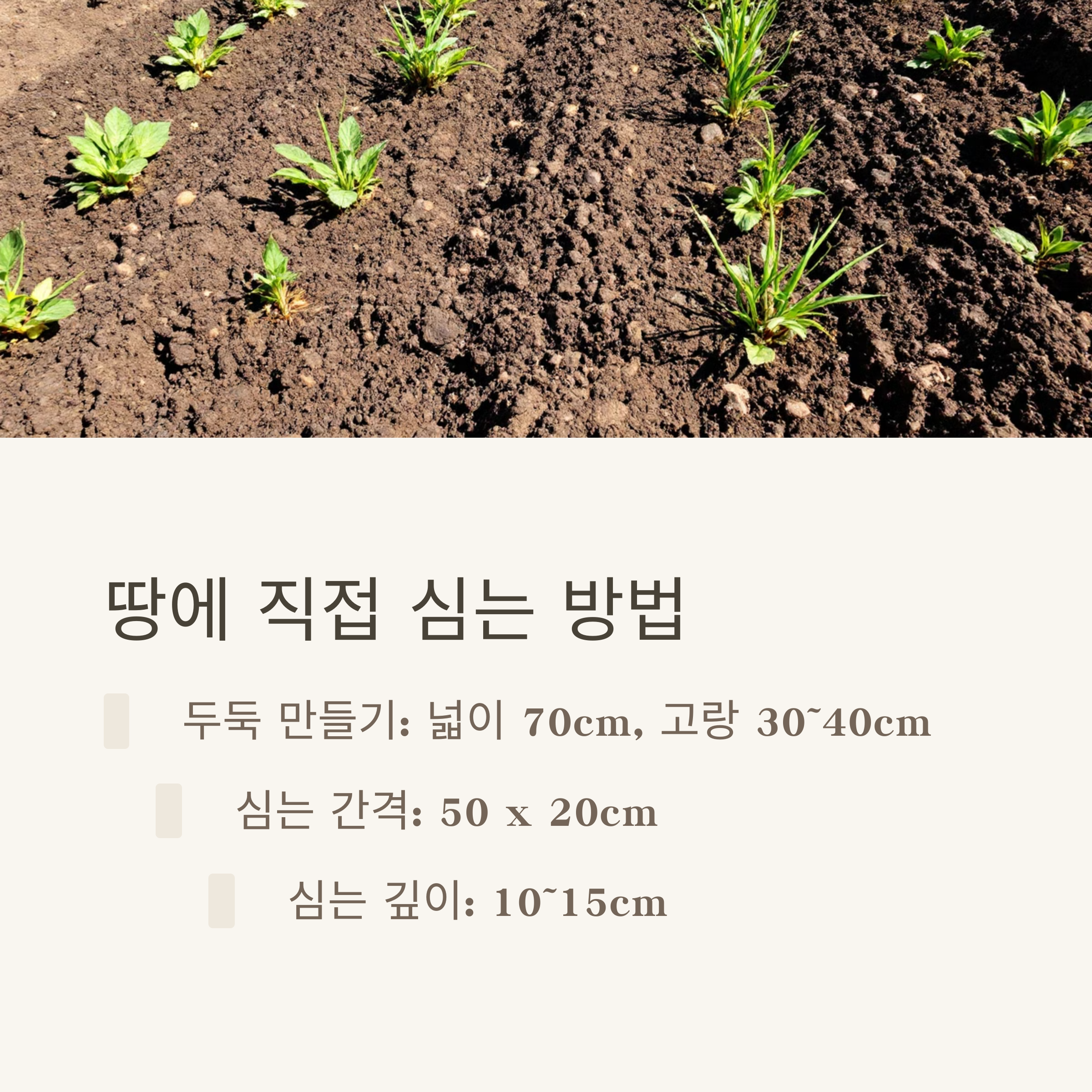 물주기: 심은 직후엔 물을 주지 않아도 돼요. 씨감자 수분으로 충분하거든요.