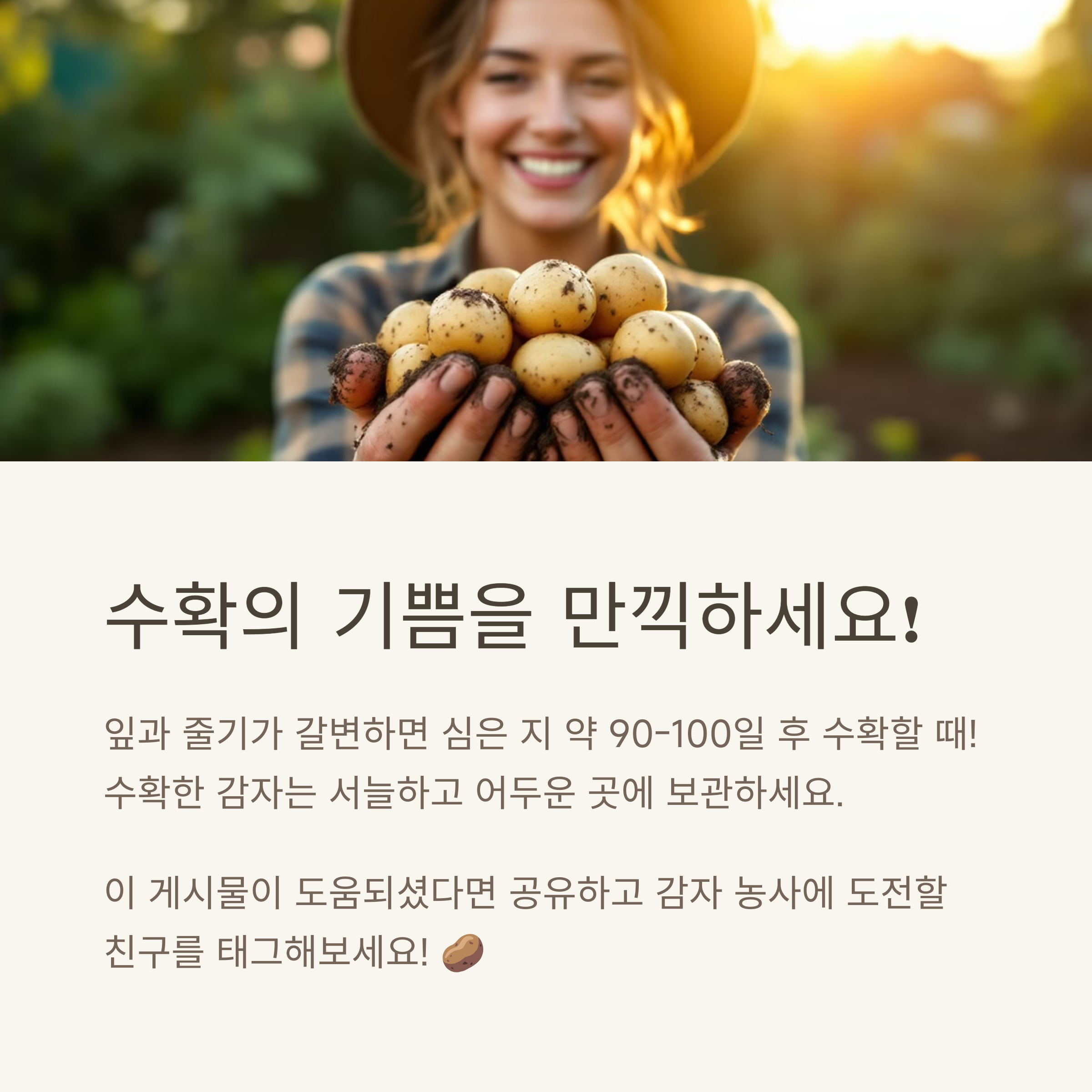 꿀팁: 수확 후 작은 감자는 씨감자로 따로 보관해보세요. 다음 해에 써도 좋아요!