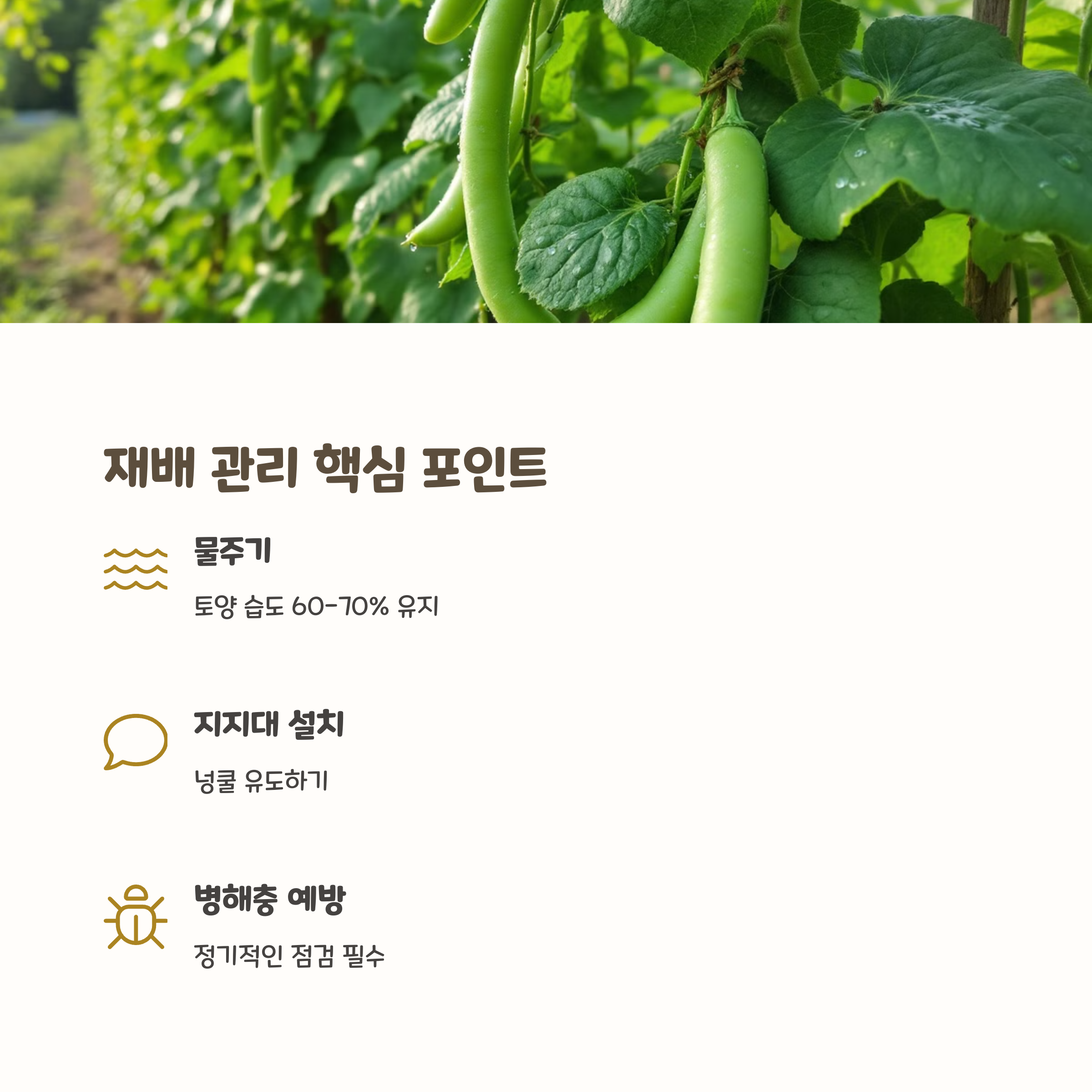 💡 차별화 팁: 진딧물 방지에 우유 희석액(물 1L + 우유 100ml)을 썼더니 콩이 더 건강해졌어요!