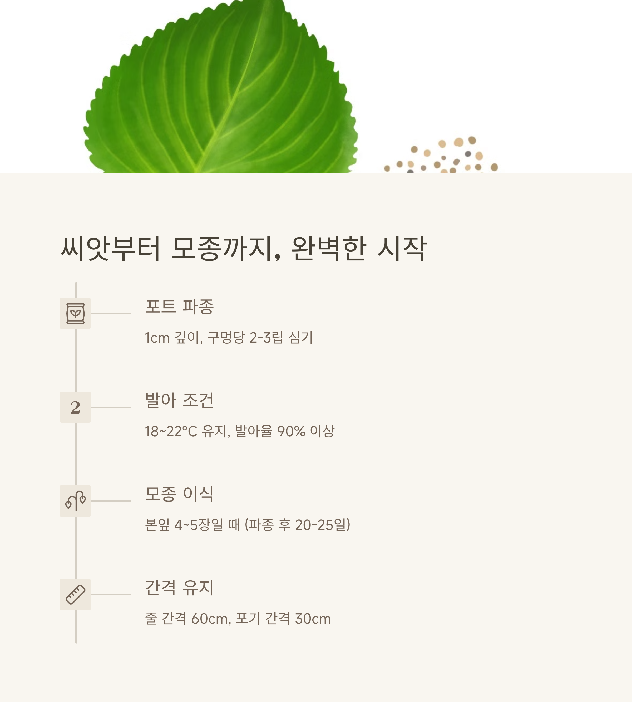 종실용으로는 ‘다유’나 ‘들샘’이 기름 함량이 높아 추천되고, 잎들깨용으로는 ‘남천’이나 ‘만백’처럼 잎이 크고 부드러운 품종이 좋아요. 목적에 맞는 품종을 선택하는 게 성공의 첫걸음입니다! 📌