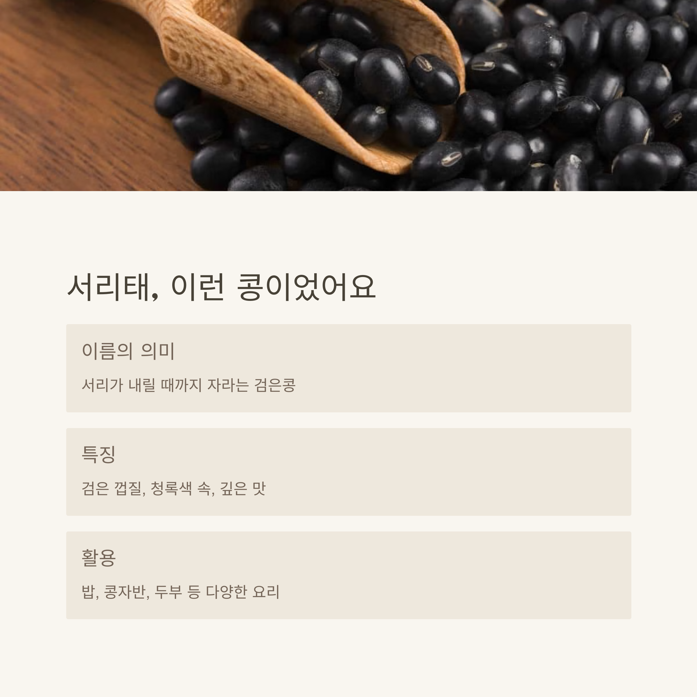 고소한 맛과 건강함을 동시에 챙길 수 있는 서리태는 한국인의 밥상에 빠질 수 없는 작물이에요.