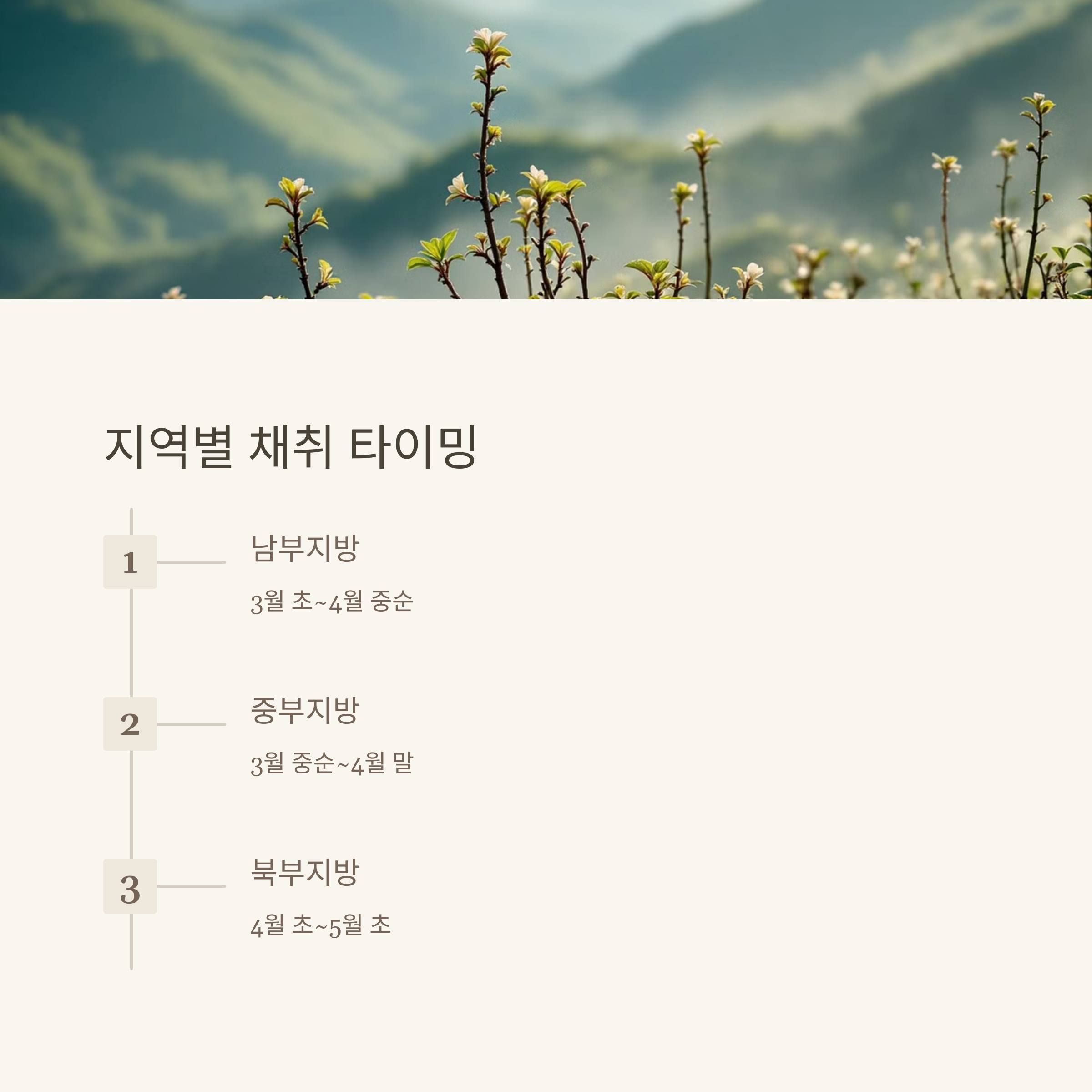 지역별 시기를 잘 맞추고, 올바른 채취방법으로 건강한 두릅을 맛보세요.
