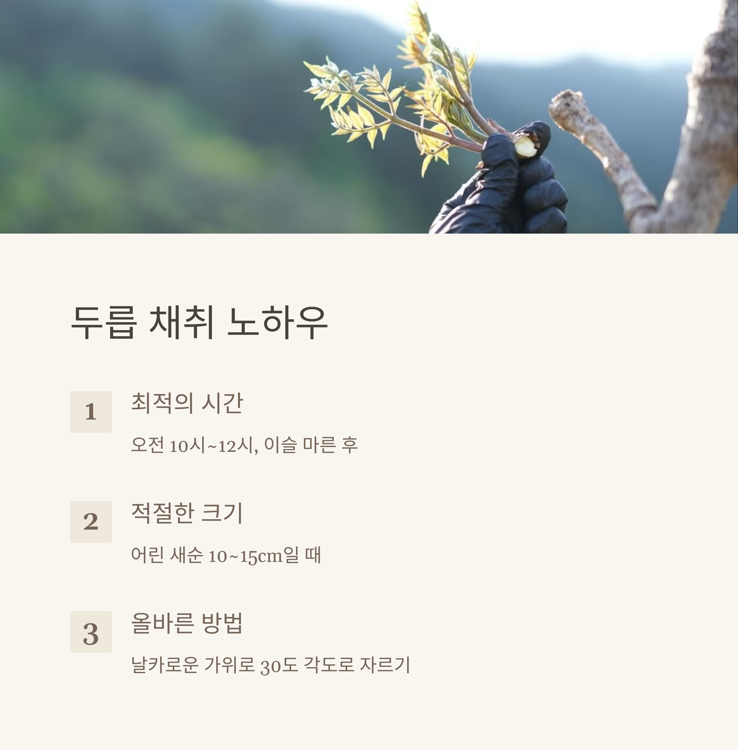 두릅 채취방법은 간단하지만 몇 가지 주의할 점이 있어요.