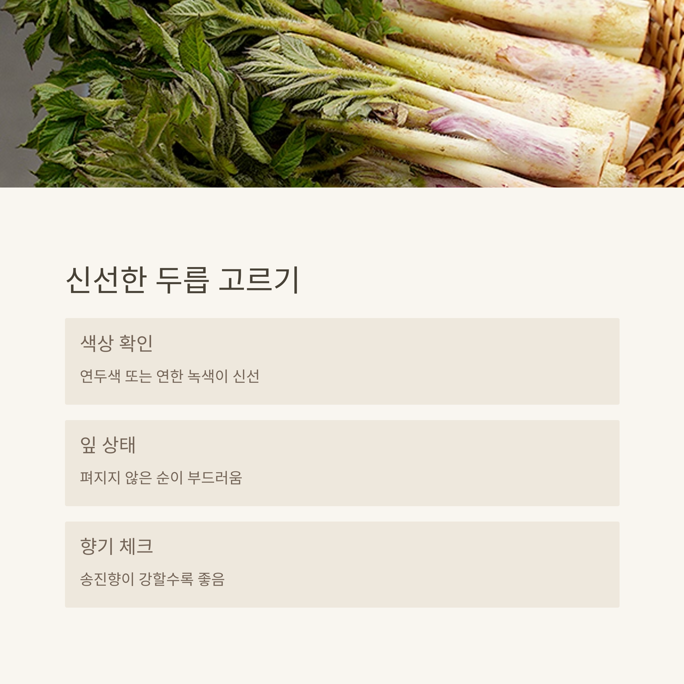 너무 많이 자란 순은 질기니까 피하는 게 좋아요.