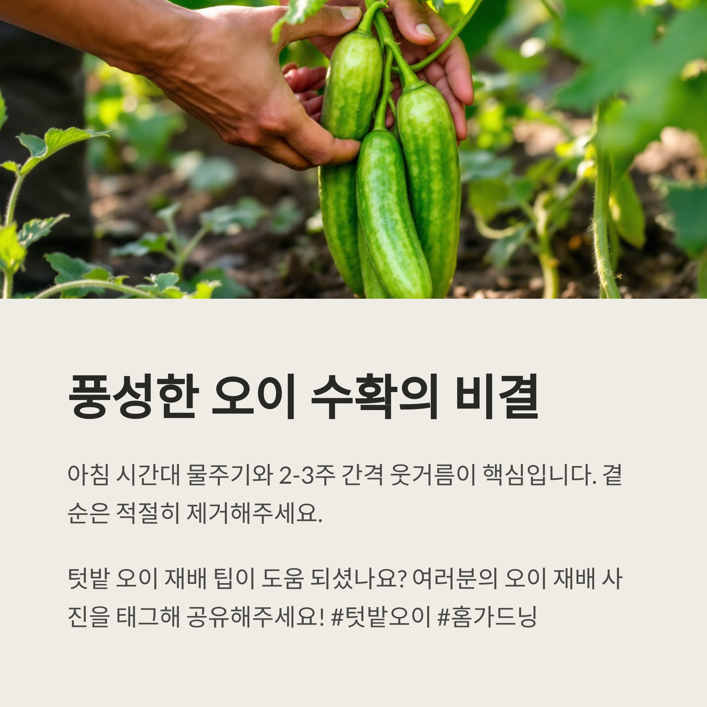 오이가 잘 자라려면 꾸준한 관리가 필수예요.