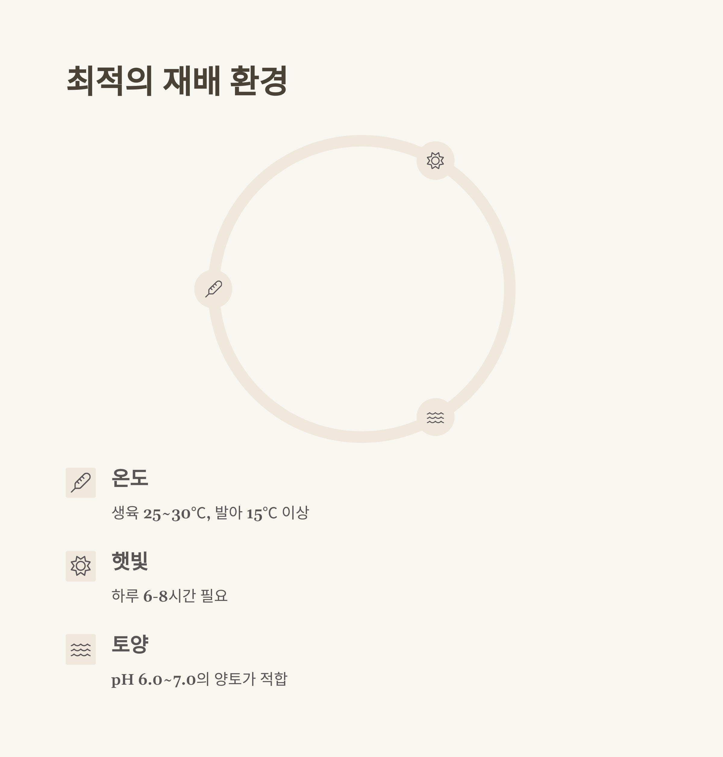참깨는 따뜻하고 건조한 곳을 좋아해요. 생육 온도는 25~30℃, 발아는 15℃ 이상 필요해요.