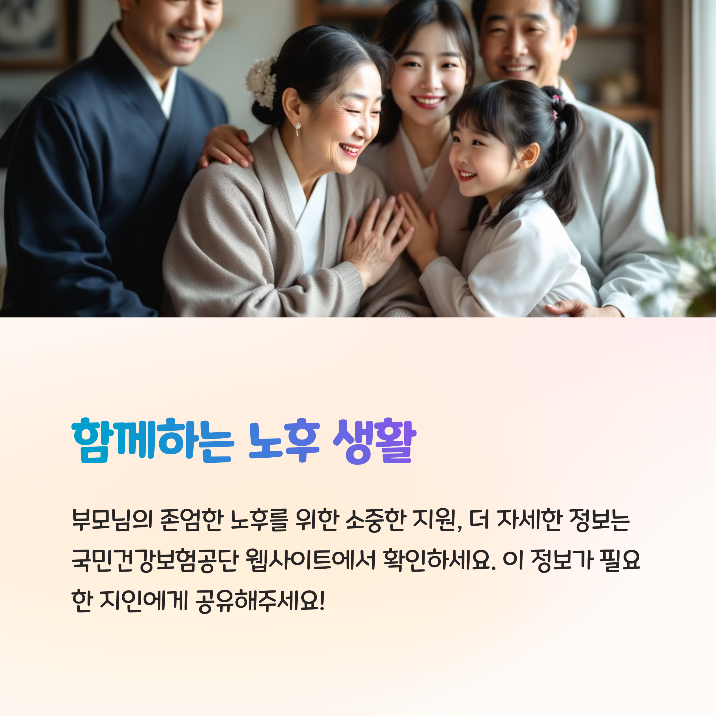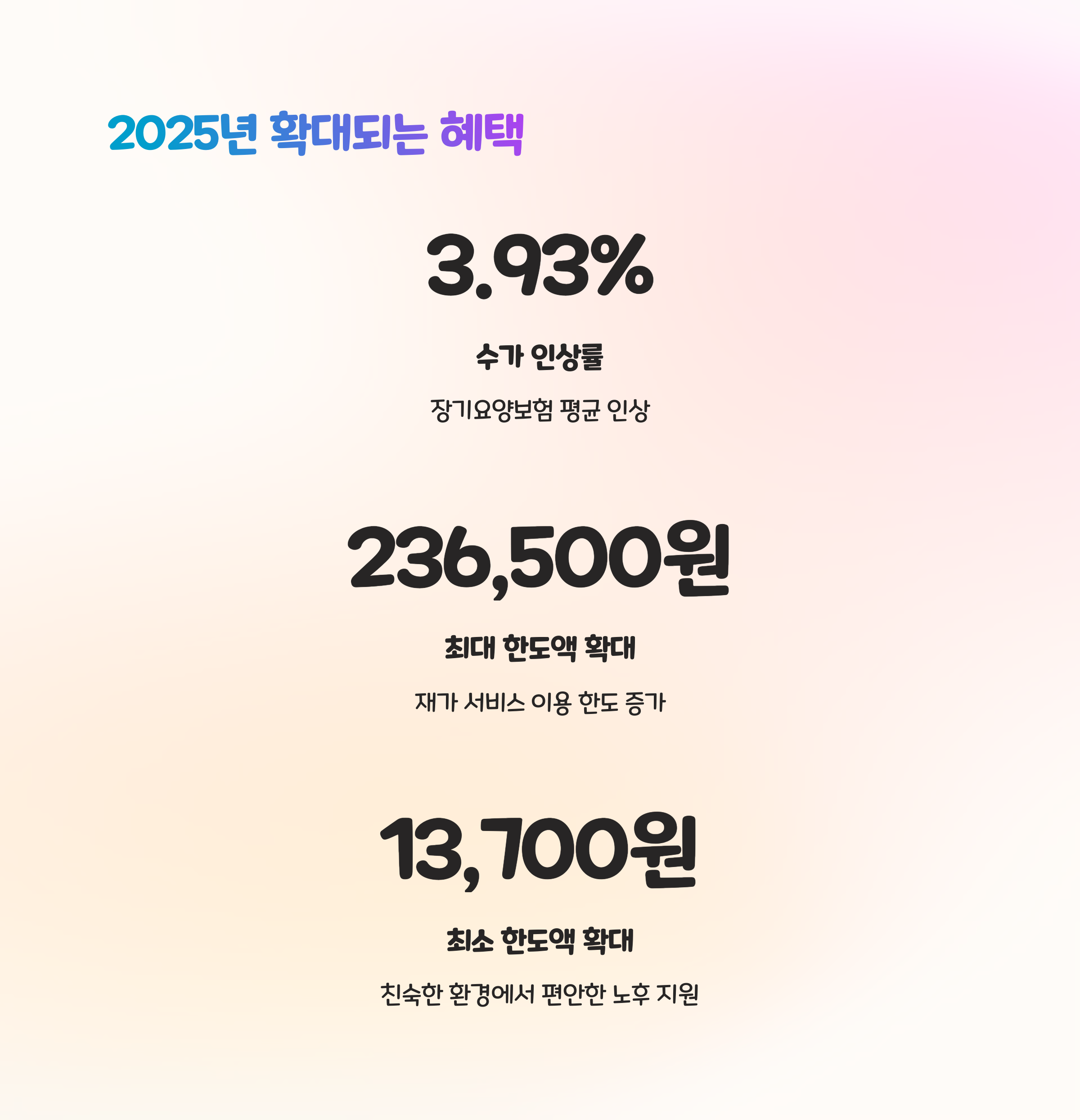 이 제도는 가족의 간병 부담을 덜고, 어르신이 존엄한 노후를 보낼 수 있도록 돕는 든든한 안전망이에요. 📌
