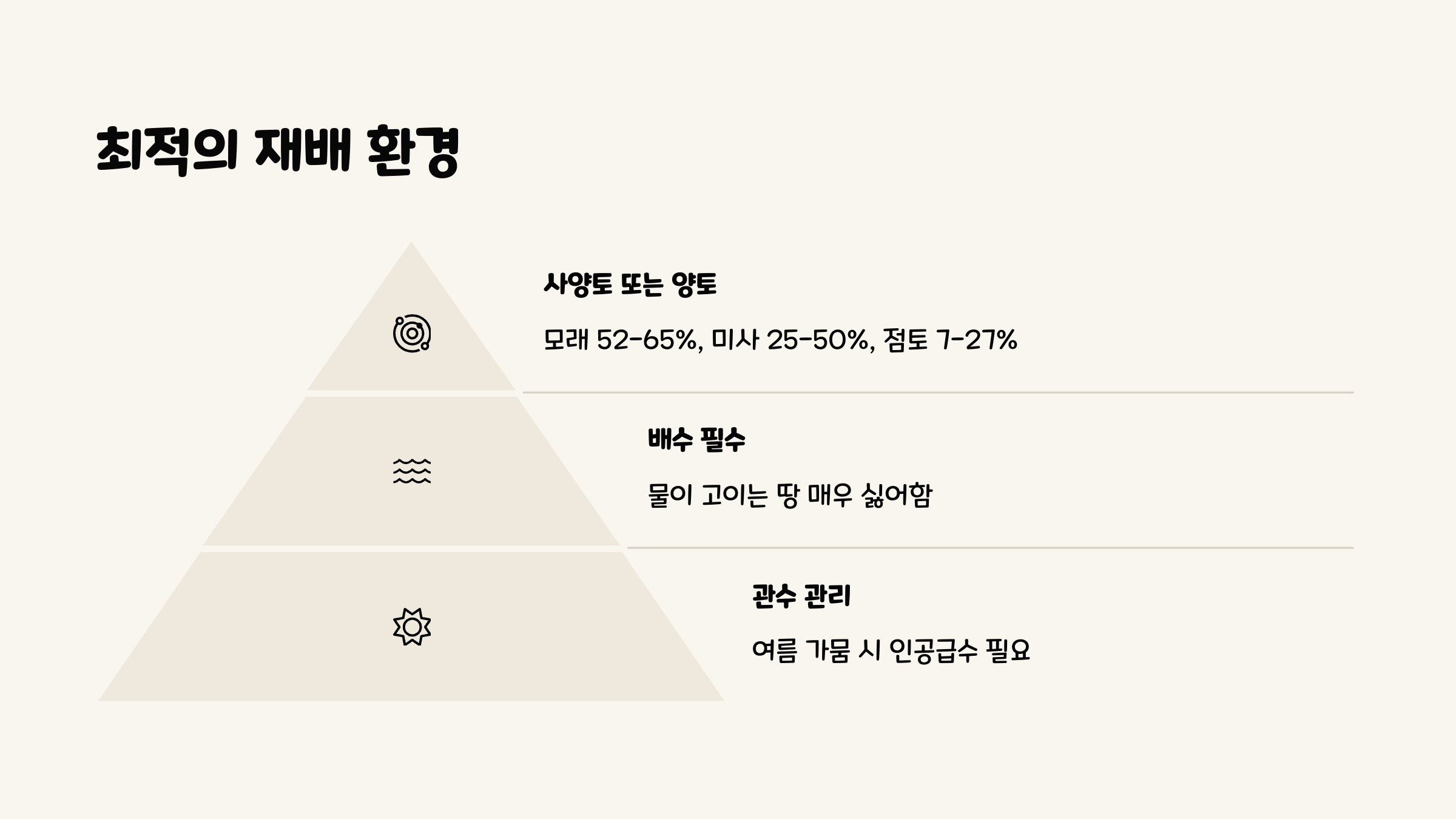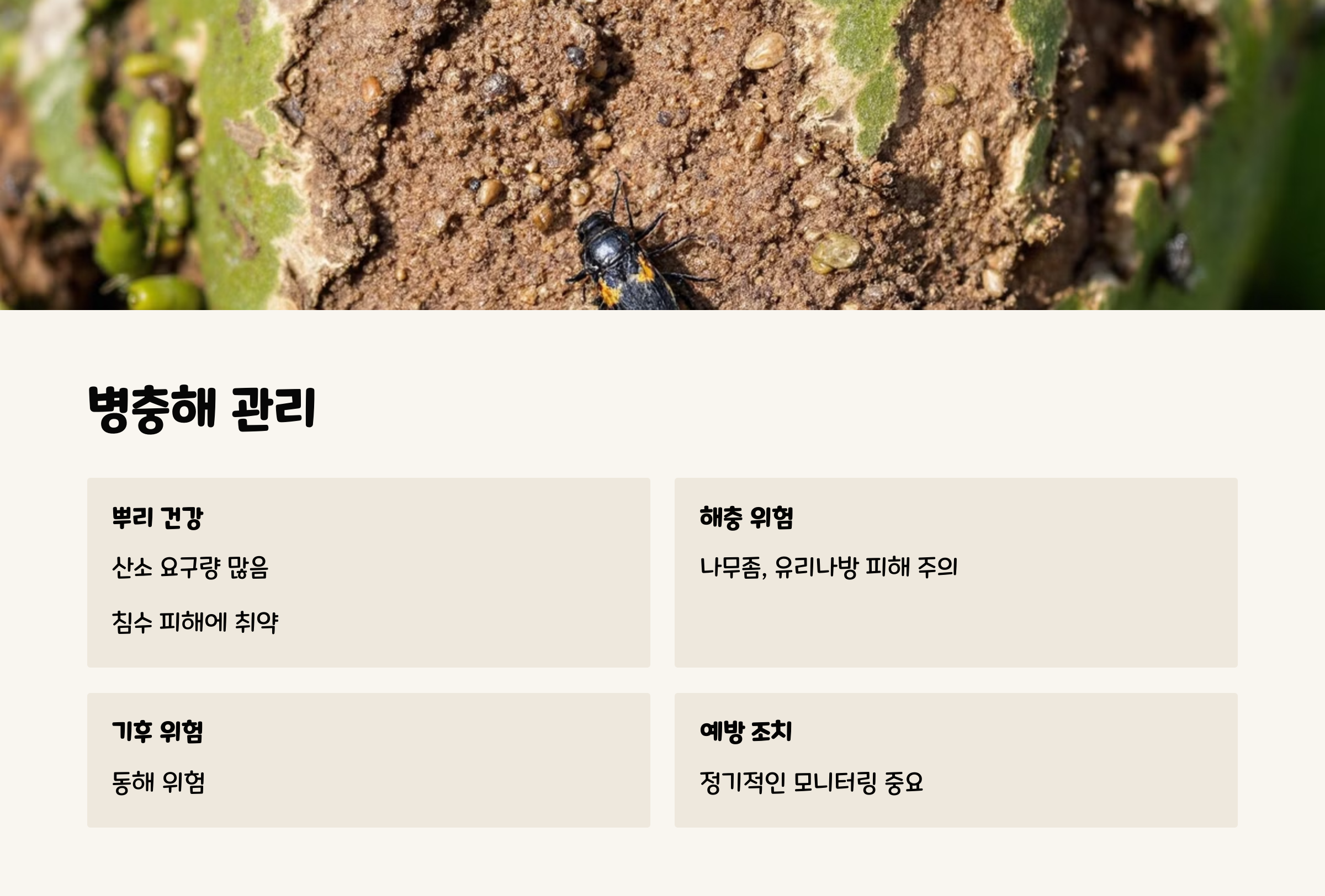 토양은 pH 6.0~6.8의 사양토(모래 60~70%, 미사 20~30%)가 딱 맞아요. 배수가 안 되면 뿌리가 썩으니 조심하세요! 📌 하루 6시간 이상 햇빛이 필요하고, 겨울엔 7도 이하 500~900시간을 보내야 꽃눈이 생겨요.