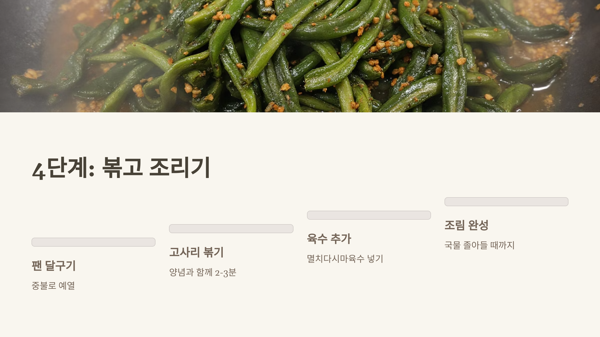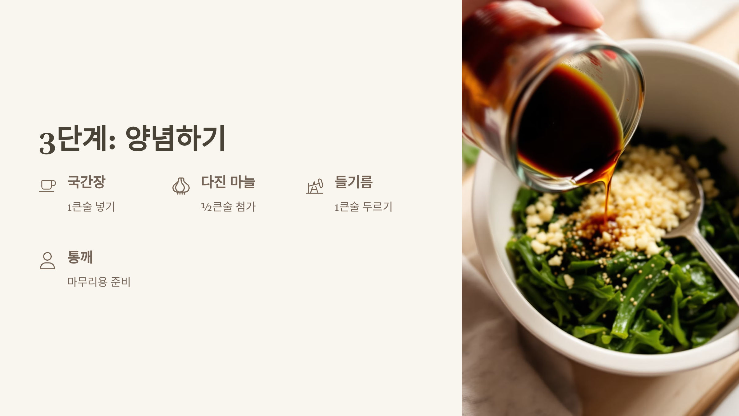 물 대신 멸치다시마 육수(50~80ml)를 넣으면 질기지 않고 감칠맛이 살아나요. 특히 생고사리나물에 잘 어울립니다.