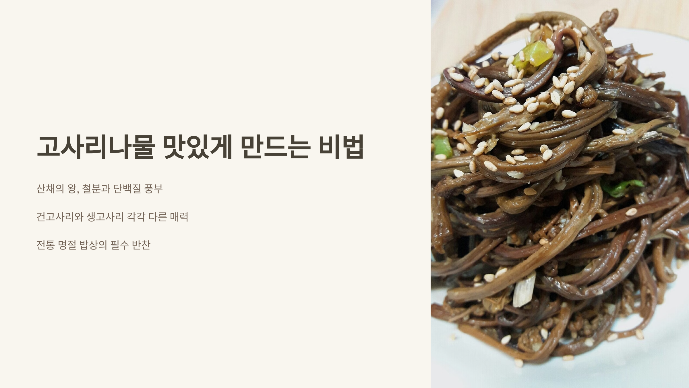 고사리나물은 명절 밥상의 단골 반찬이죠! 😊 건고사리나 생고사리나물 모두 부드럽고 구수한 매력으로 사랑받는데, 조리법에 따라 맛이 천차만별이에요.