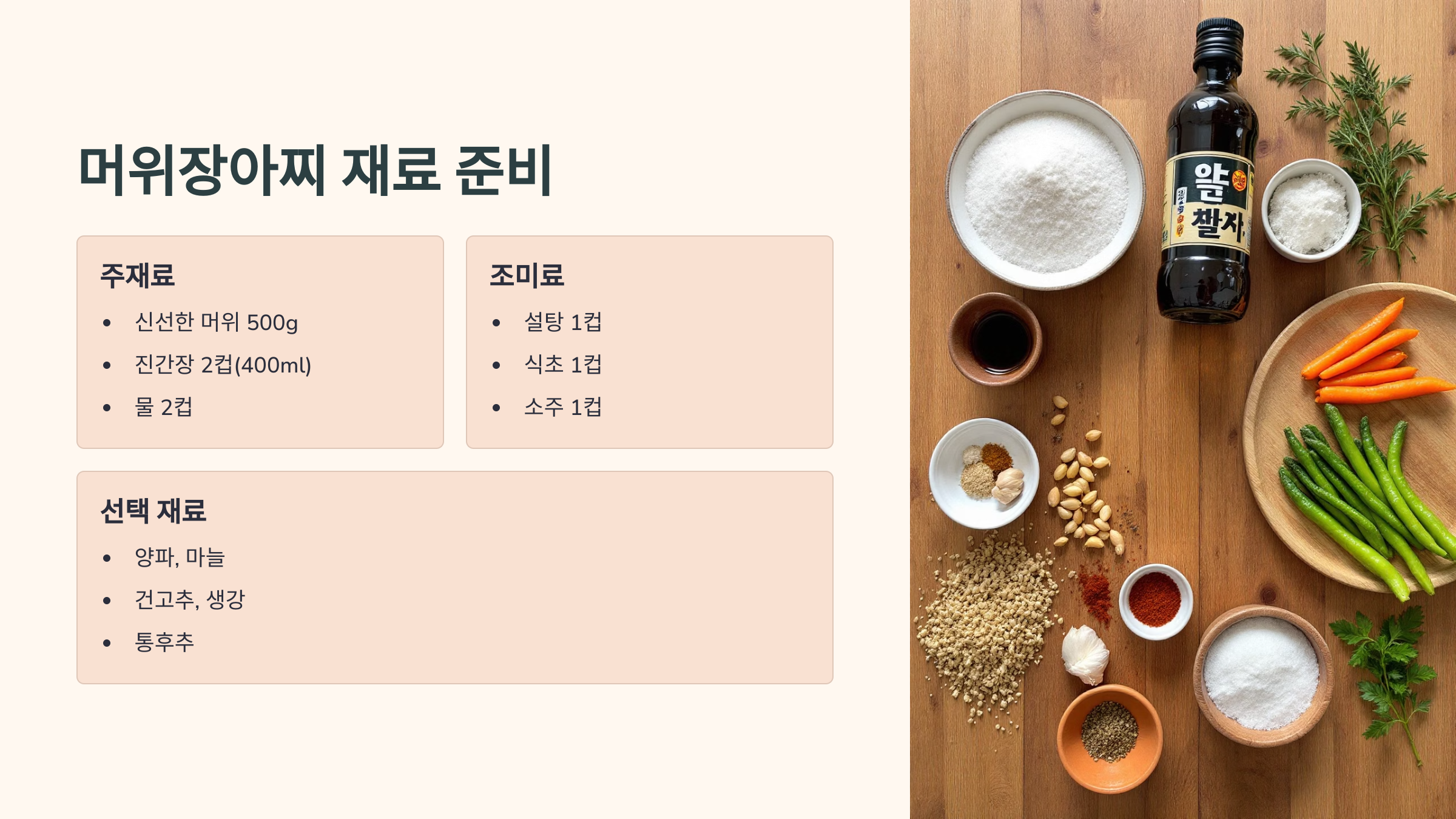 📊 머위장아찌 재료 도표