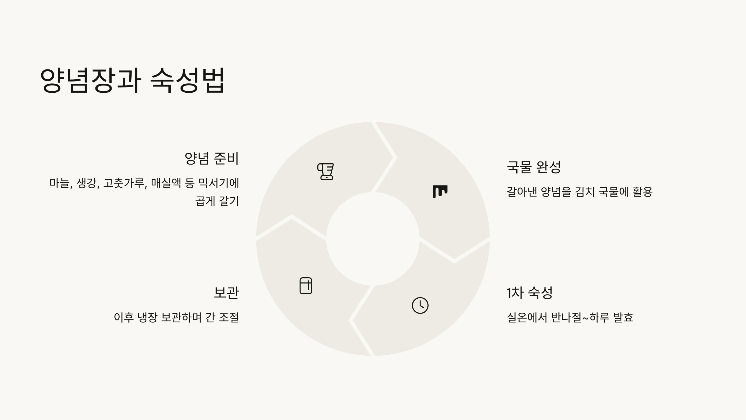 | 초기 숙성 | 12~24시간 | 재료의 신선한 맛이 살아있고 국물이 맑음 |